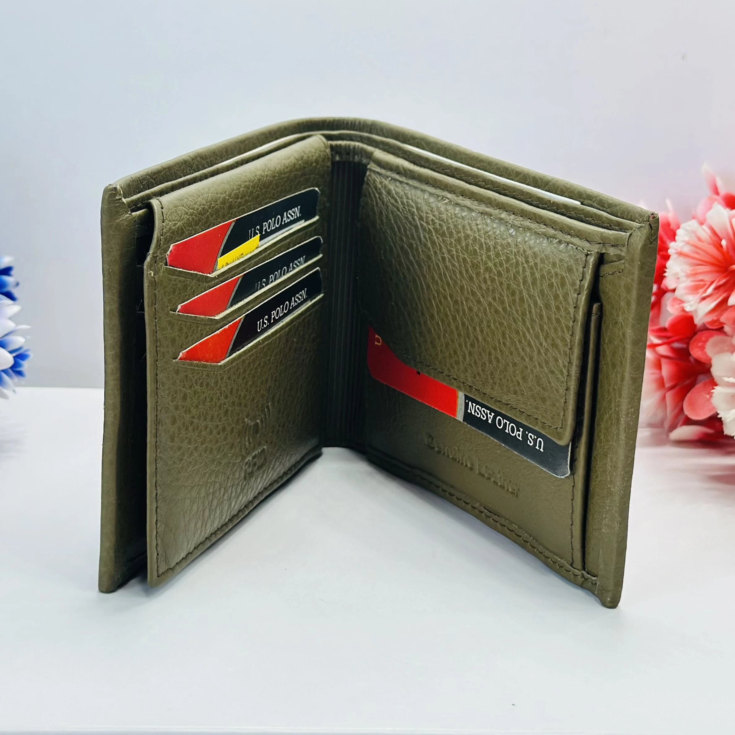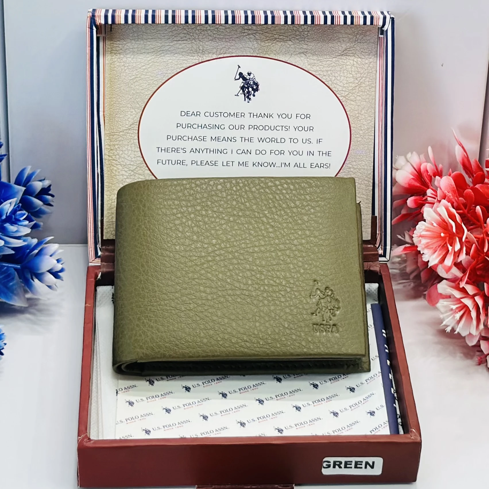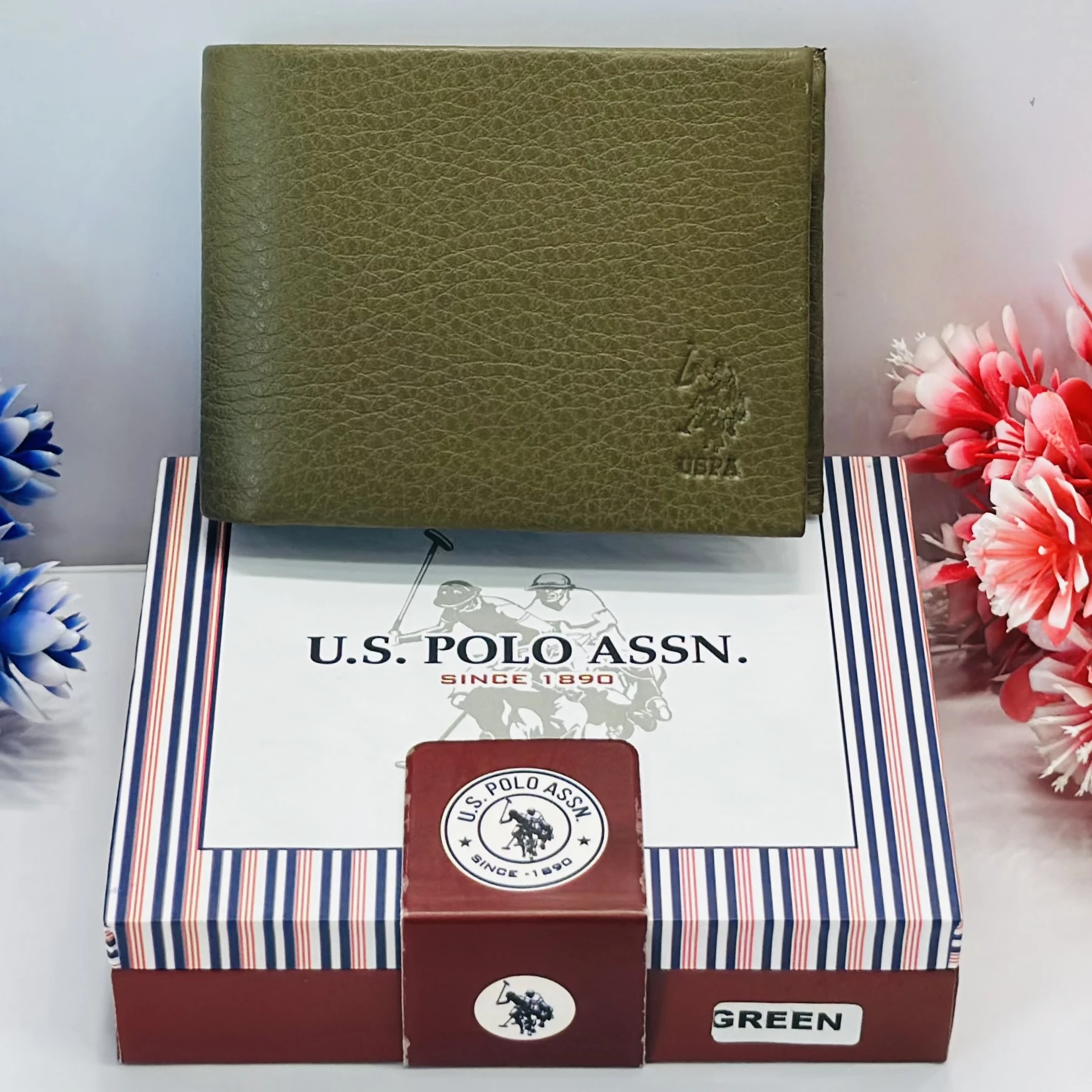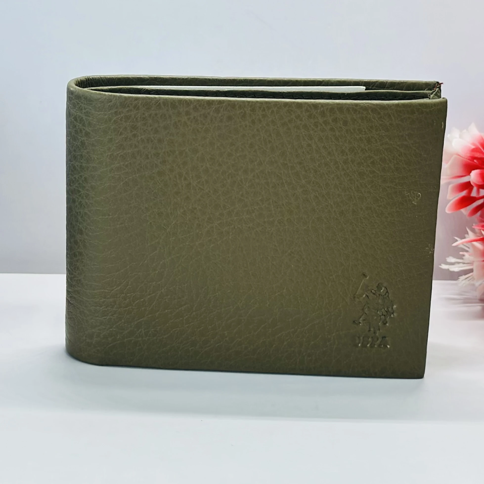 👉 Theme :- U.S. Polo Assn. men's bi-fold wallet in olive green grained leather.