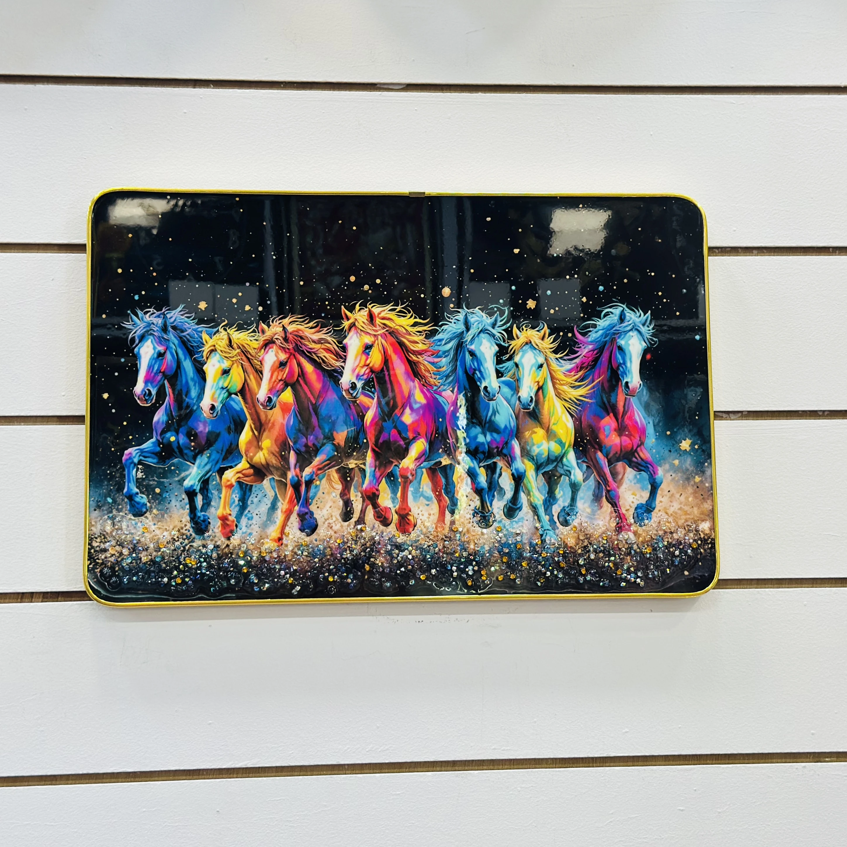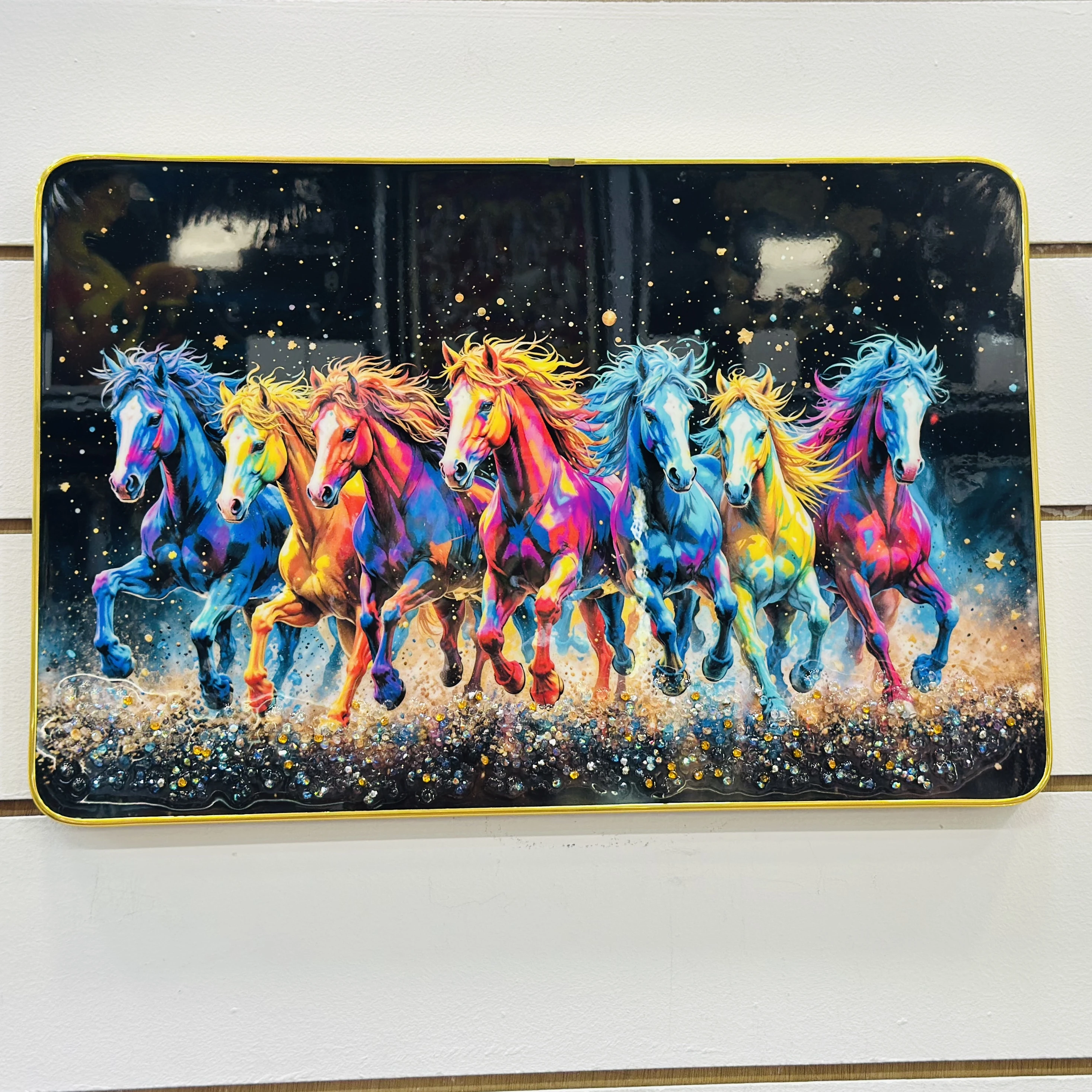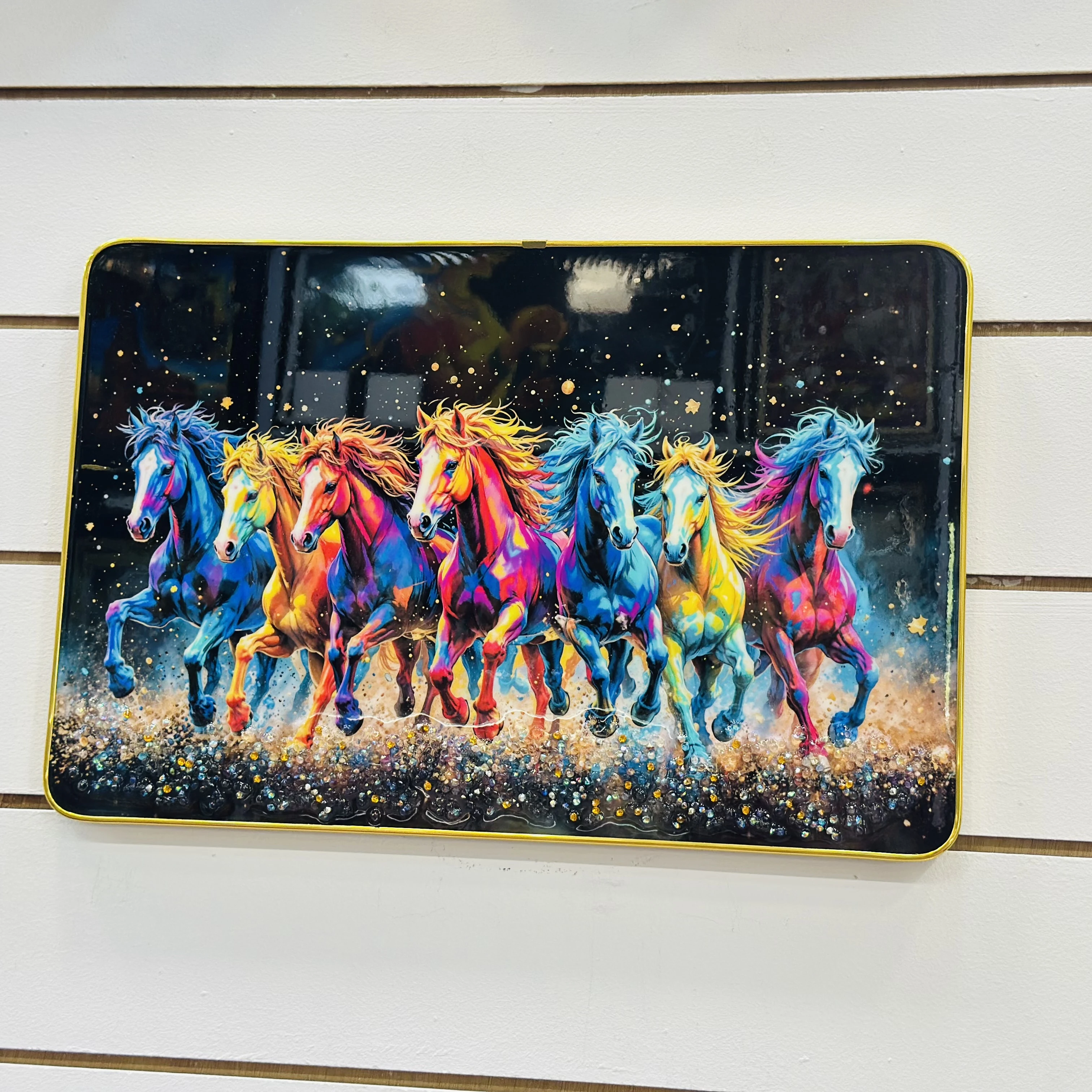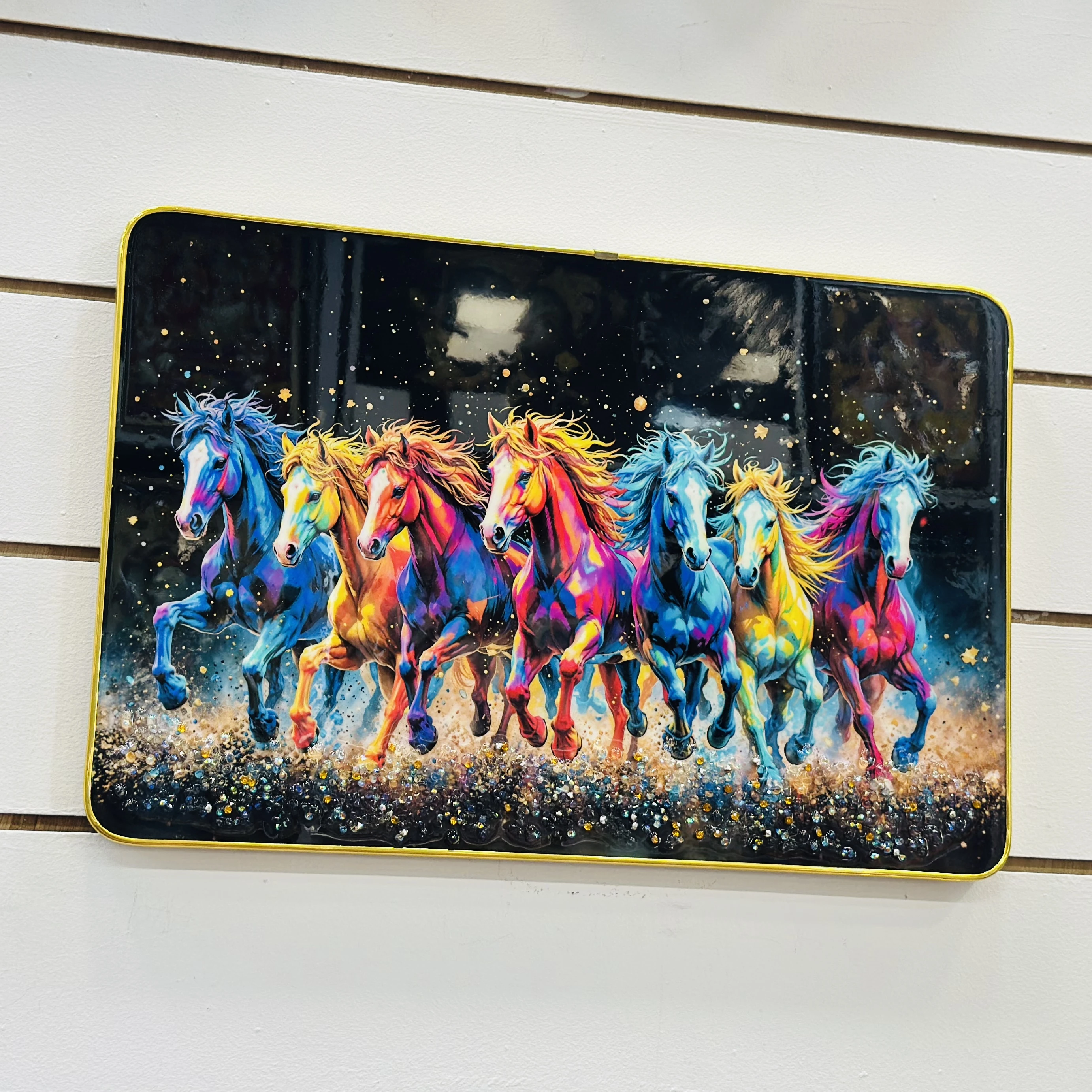 👉 Theme :- Masstone Vastu Seven Running Horses Big Crystal Embedded Painting.