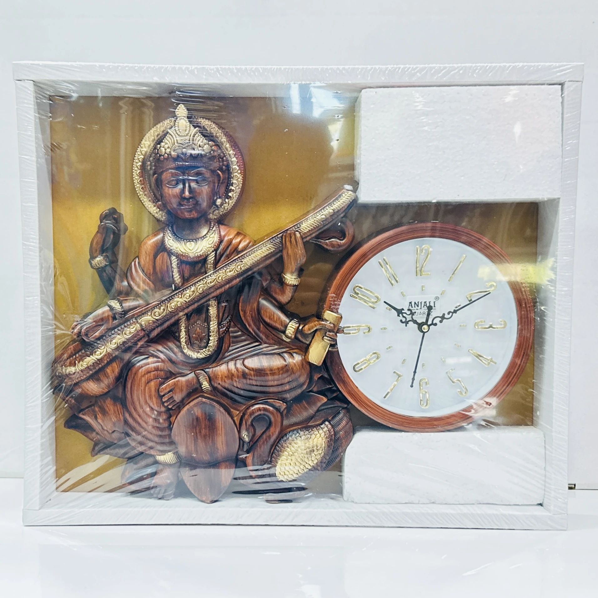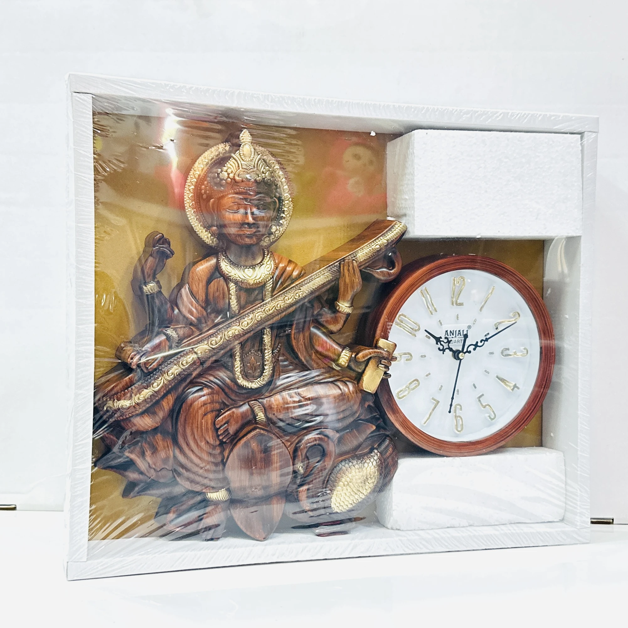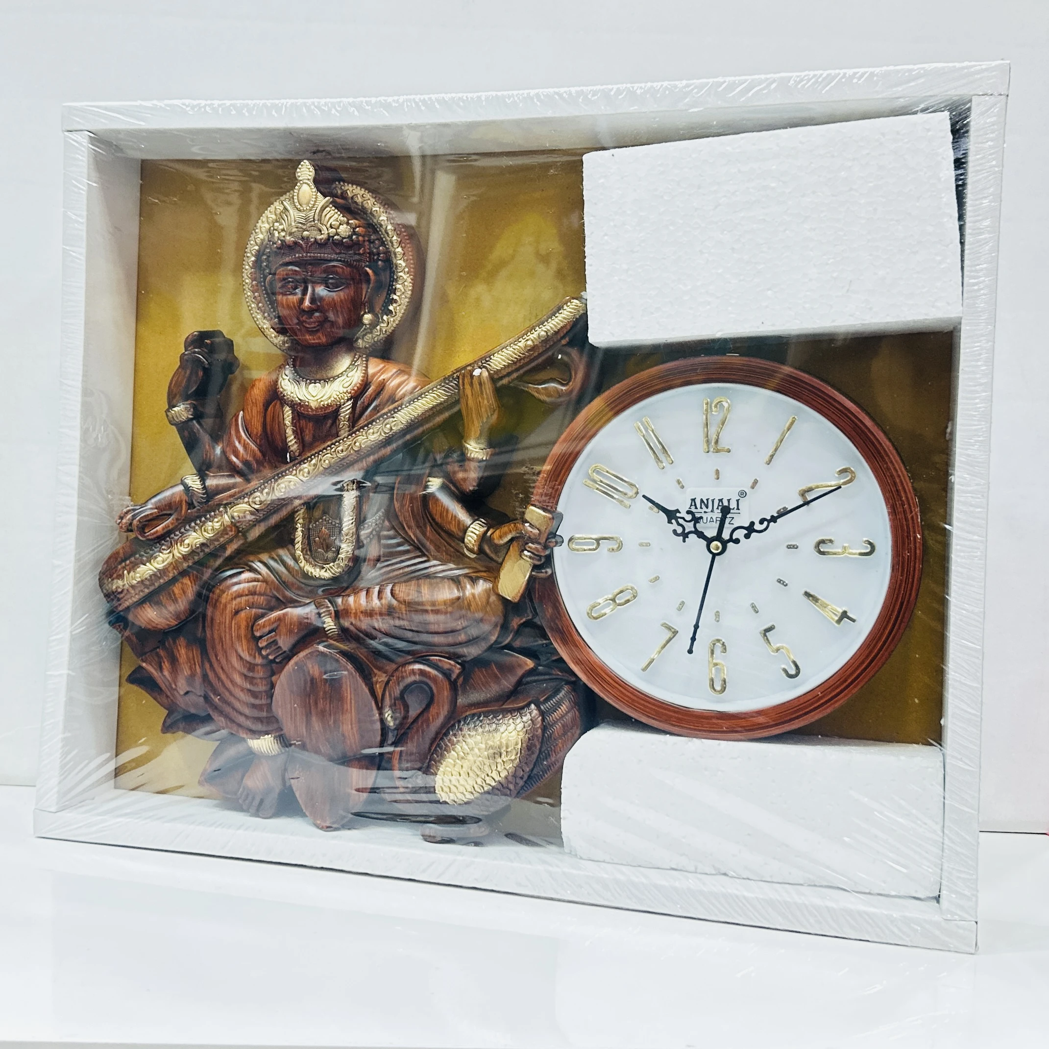 👉 Theme :- ANJALI Quartz analog wall clock, featuring a decorative Saraswati Maa design as part of the frame.