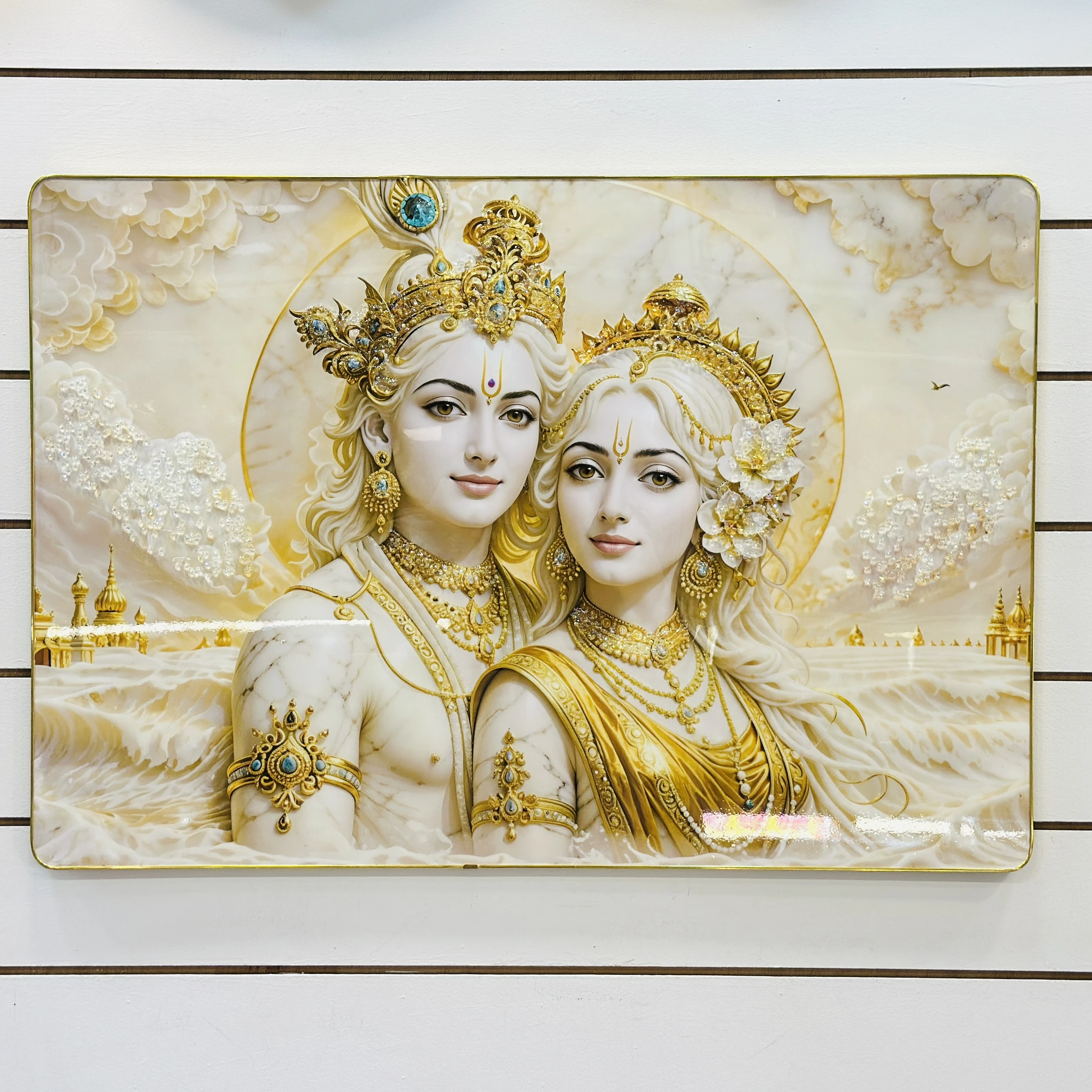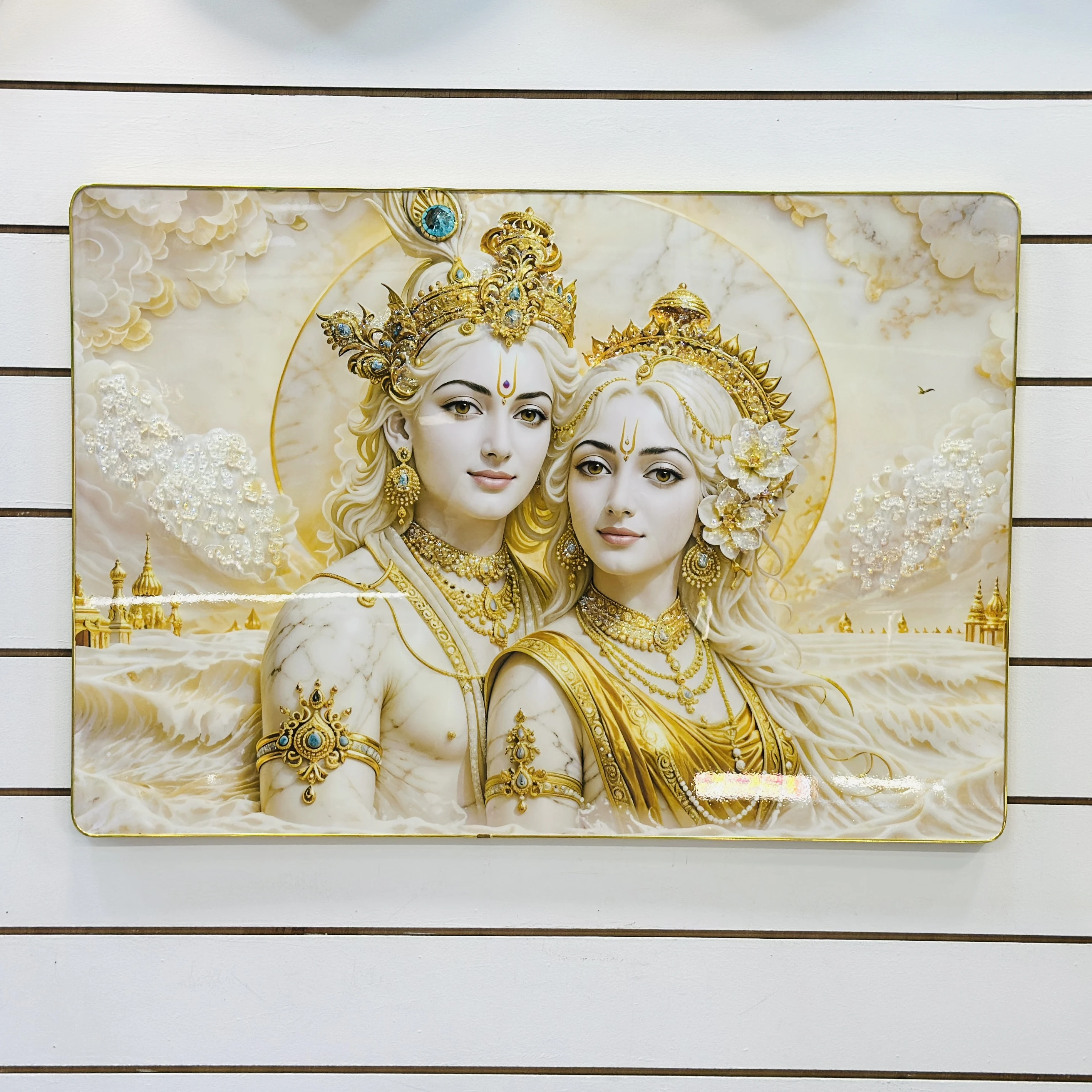 Radha Krishna wall painting (SKU CEVBF8 )featuring a synthetic or textured frame.