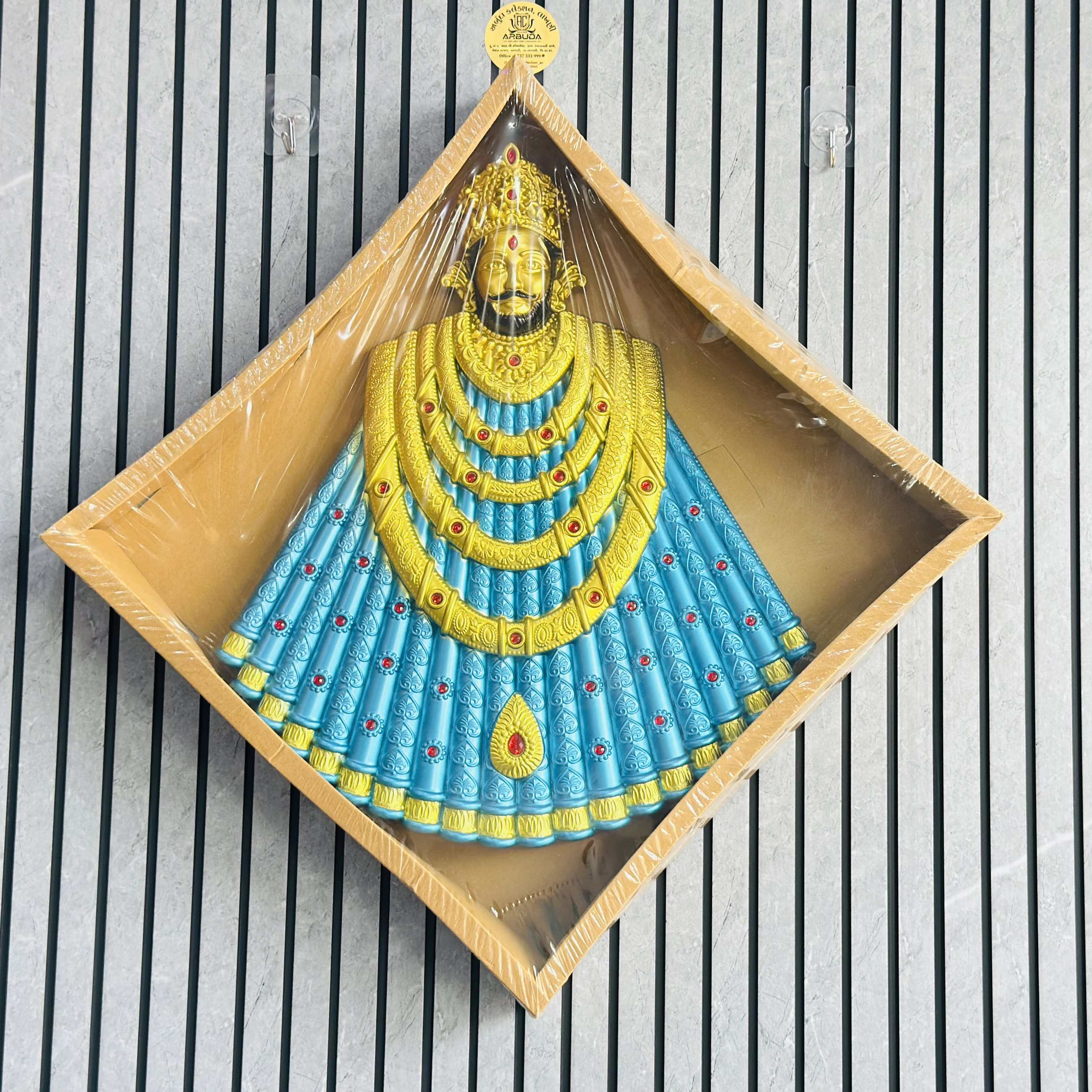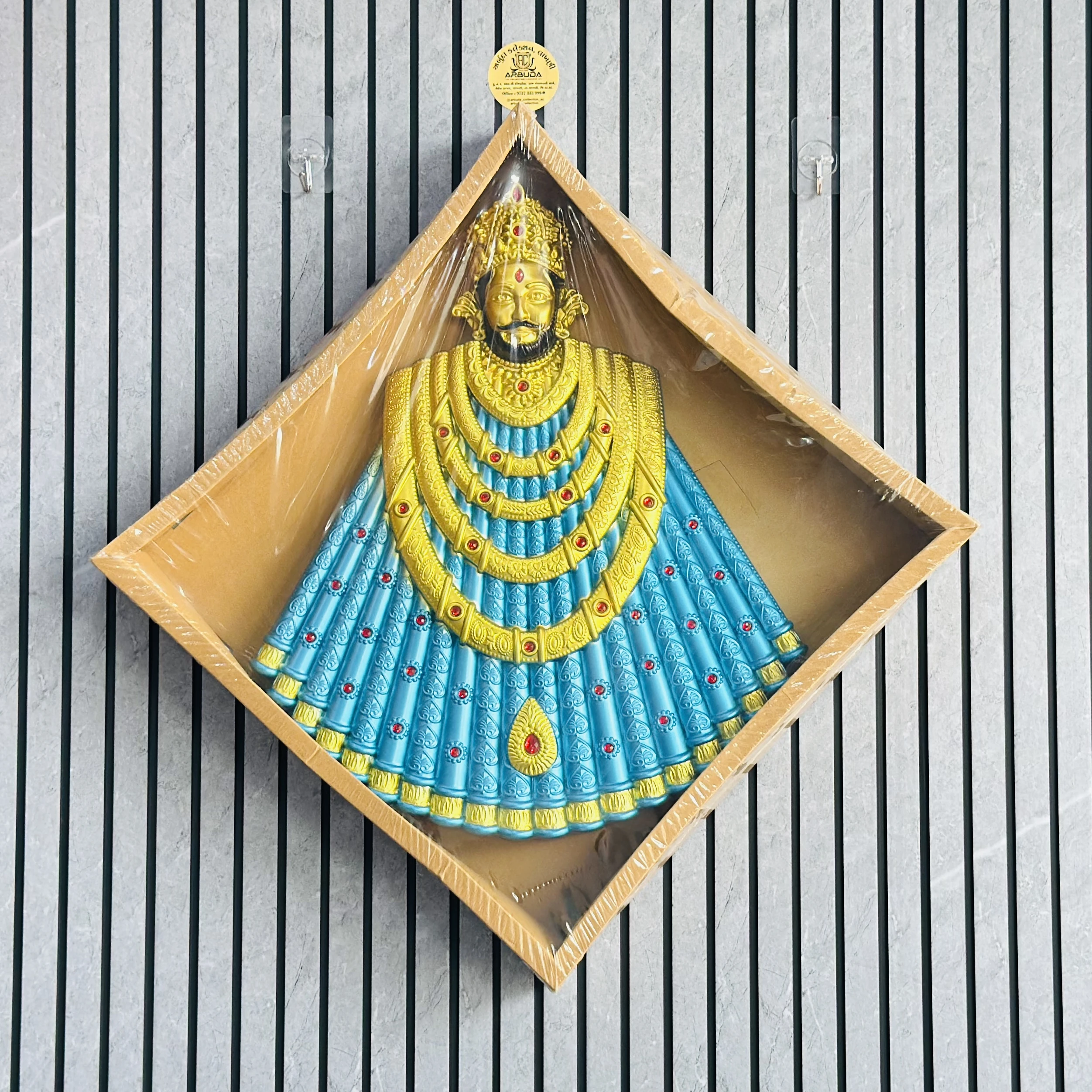 👉 Theme :- wall-mounted idol of Khatu Shyam Ji, a deity revered as an incarnation of Lord Krishna.