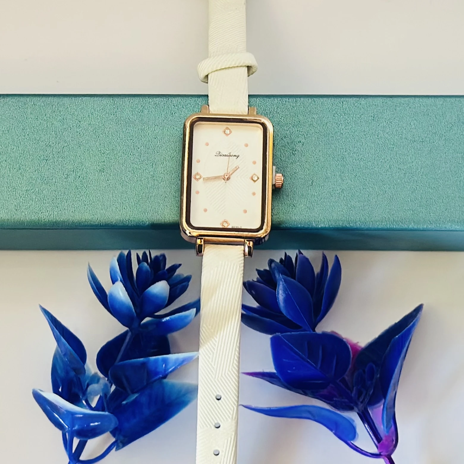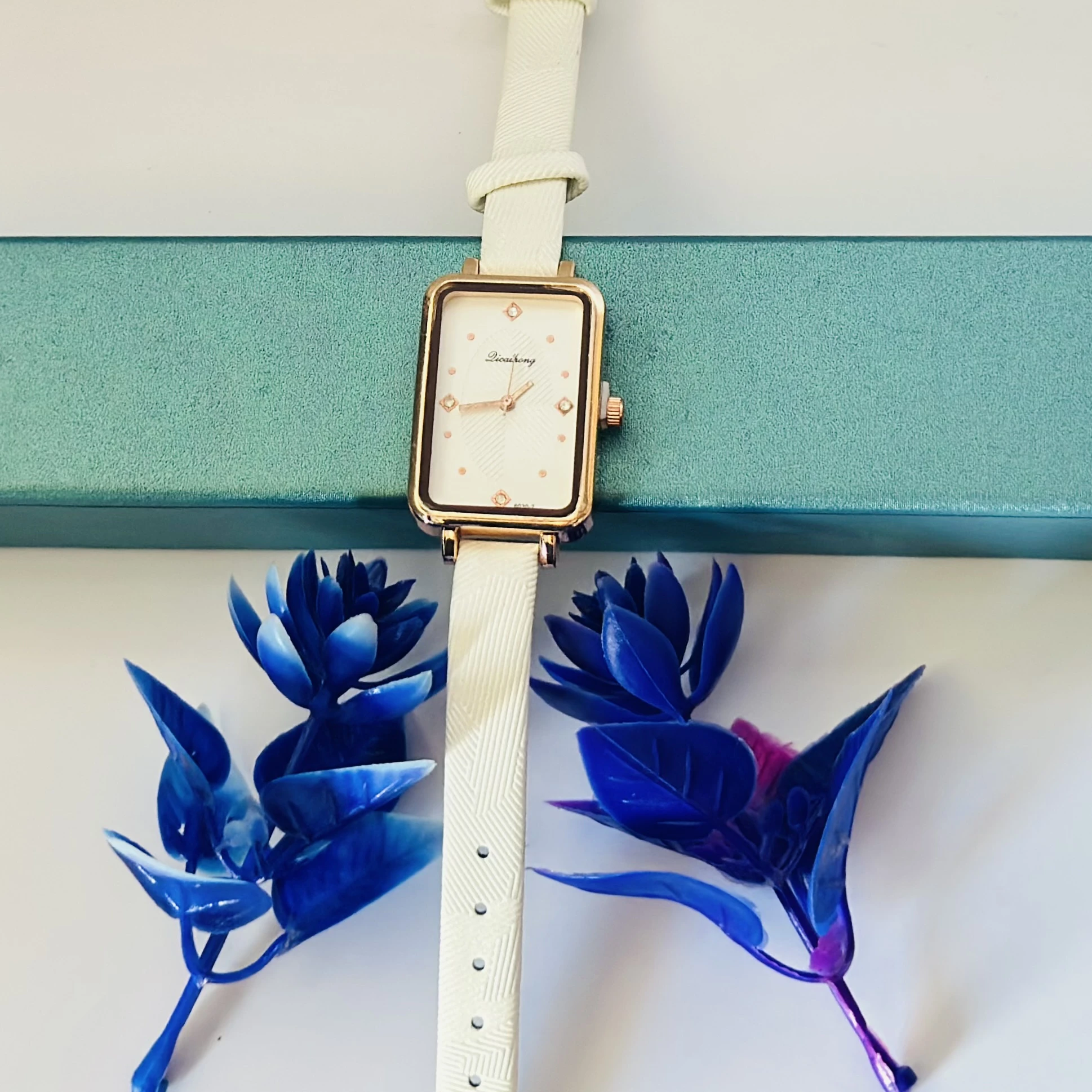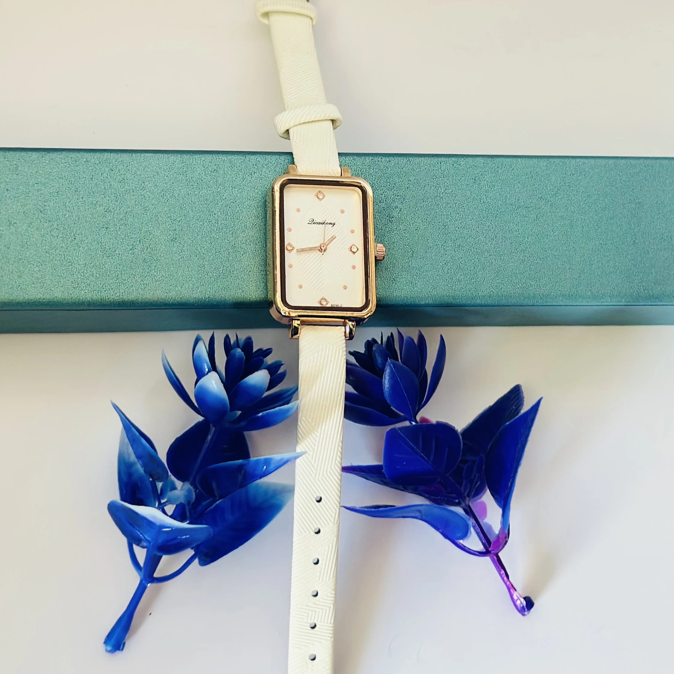 👉 Theme :- white Focus quartz analog watch for women with a white leather strap.