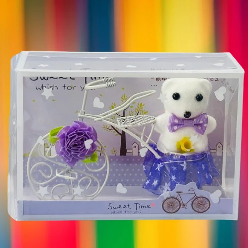 👉 Theme :- White Plastic Cycle with Teddy Bear and Rose Petals Gift Box