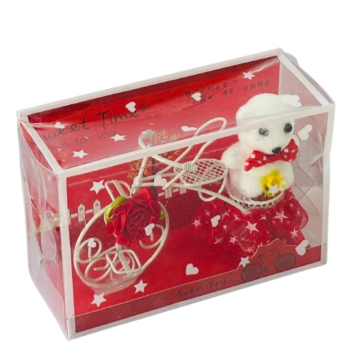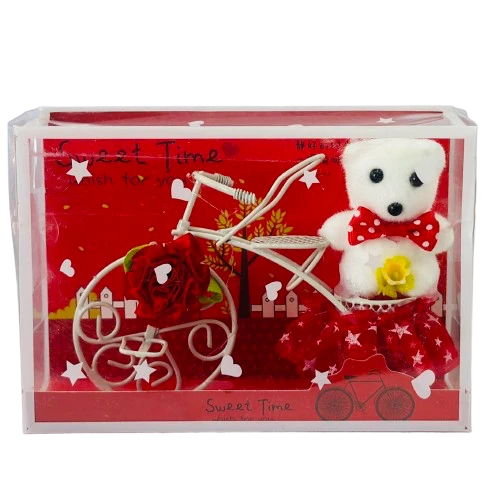 👉 Theme :- White Plastic Cycle with Teddy Bear and Rose Petals Gift Box