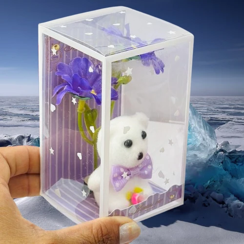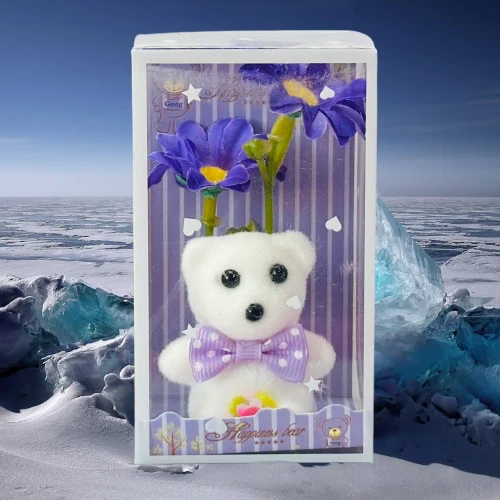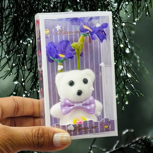 👉 Theme :- white teddy bear and artificial flower gift set