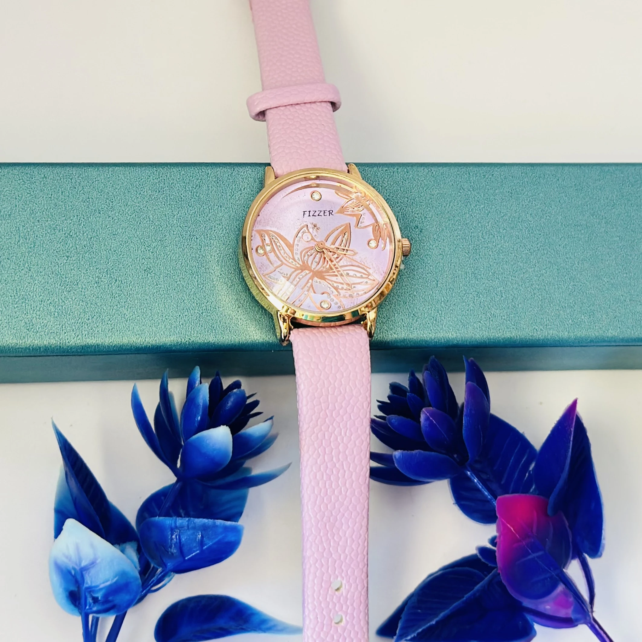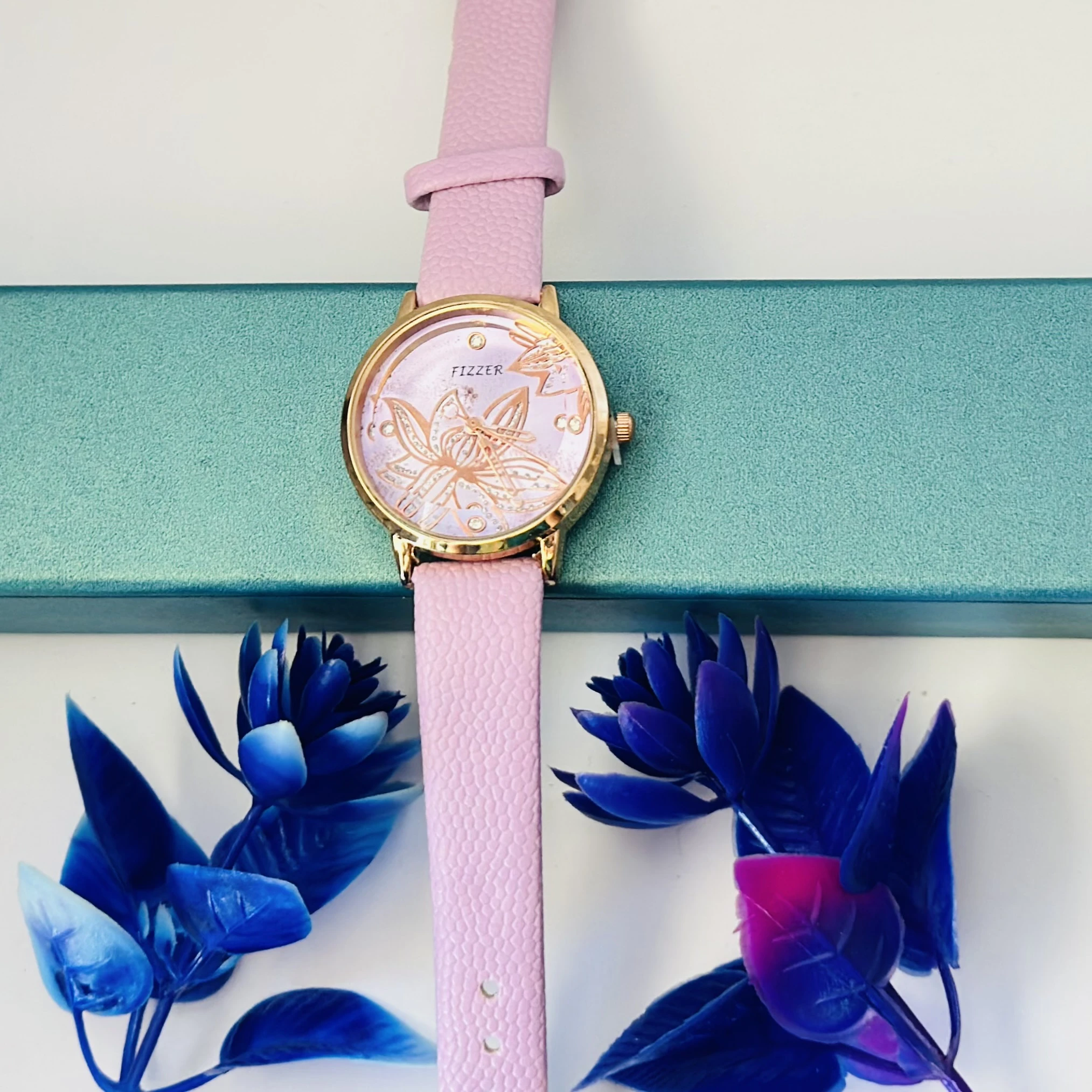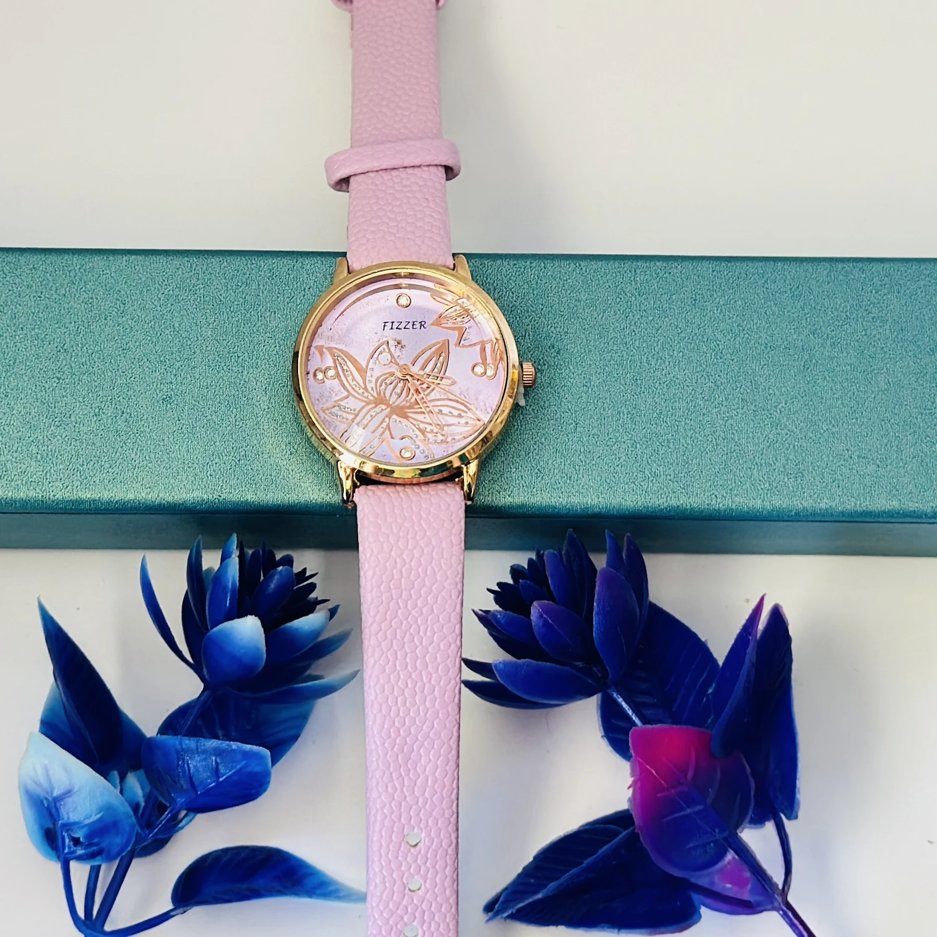 👉 Theme :- Women's Analogue Roman Flower Designer Leather Strap Watch