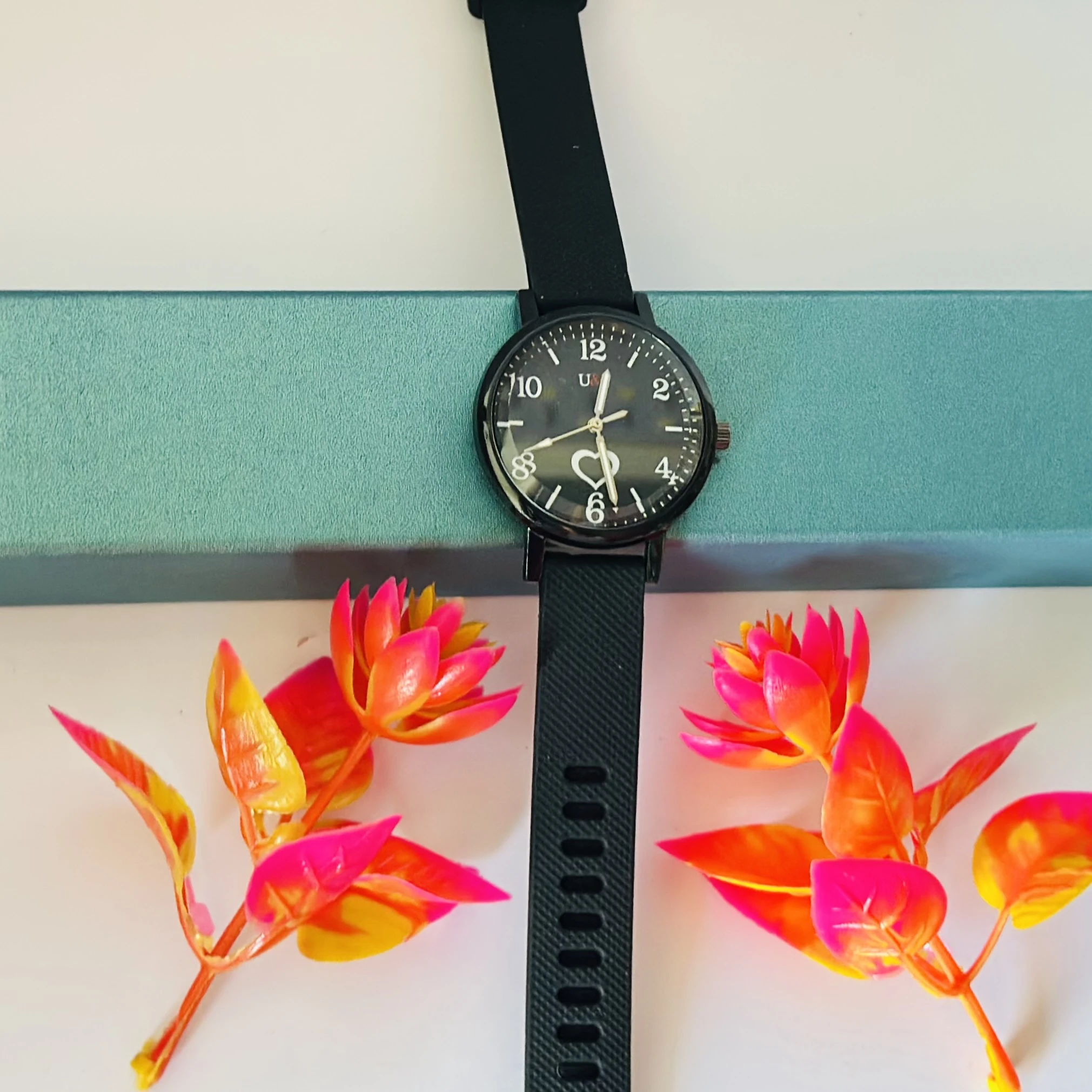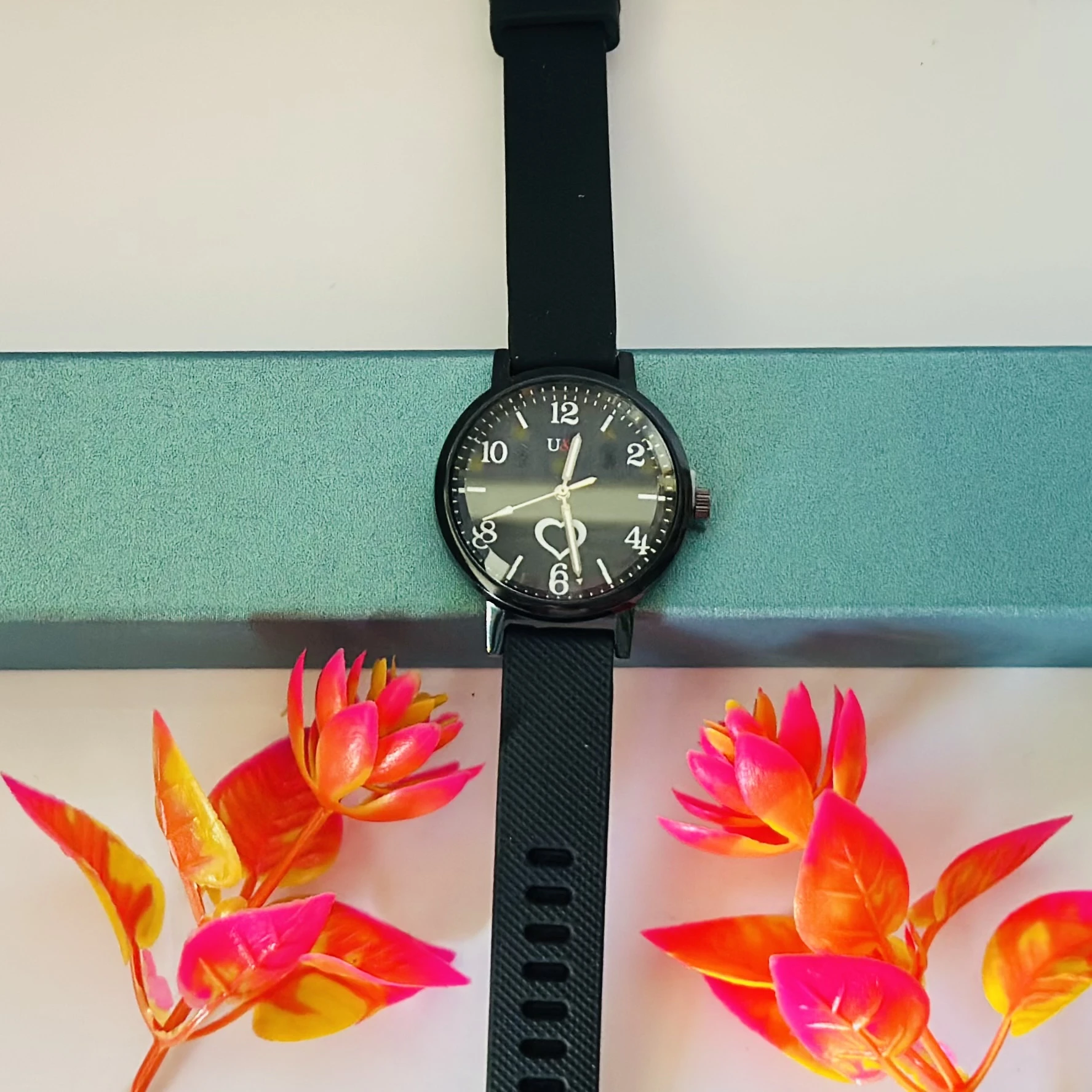 👉 Theme :- women's black silicone strap watch with an easy-to-read dial.