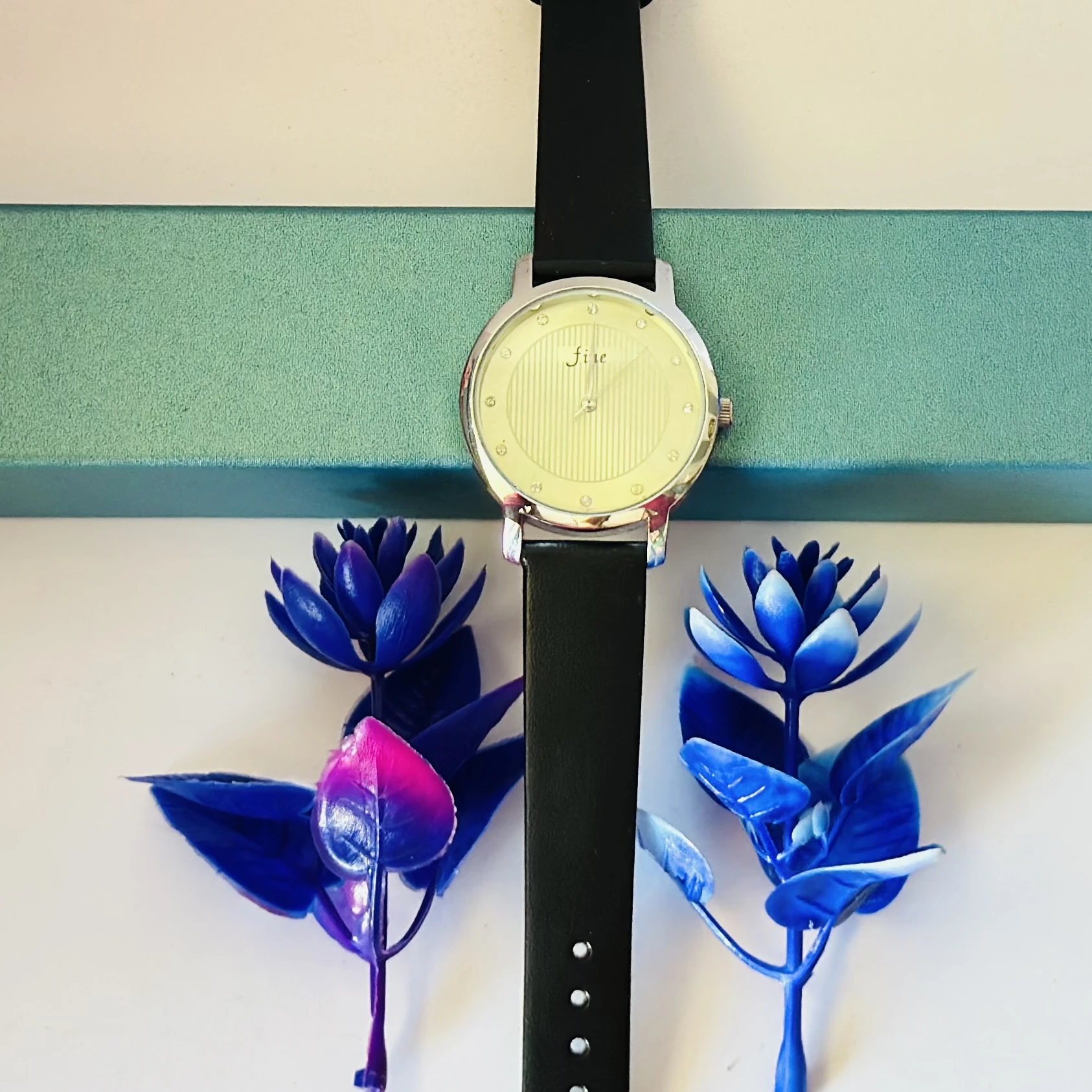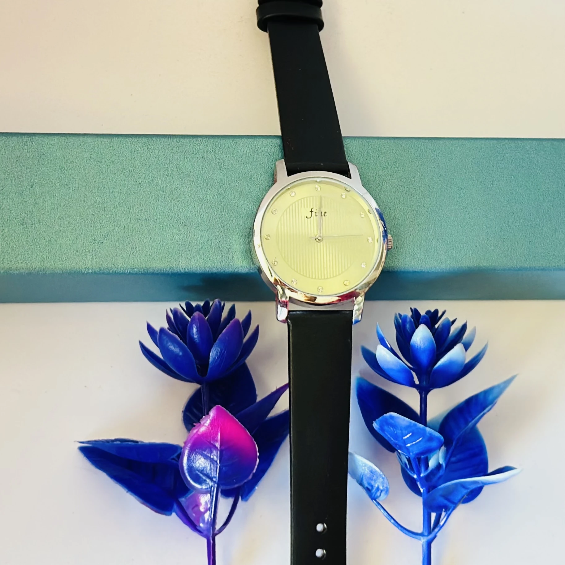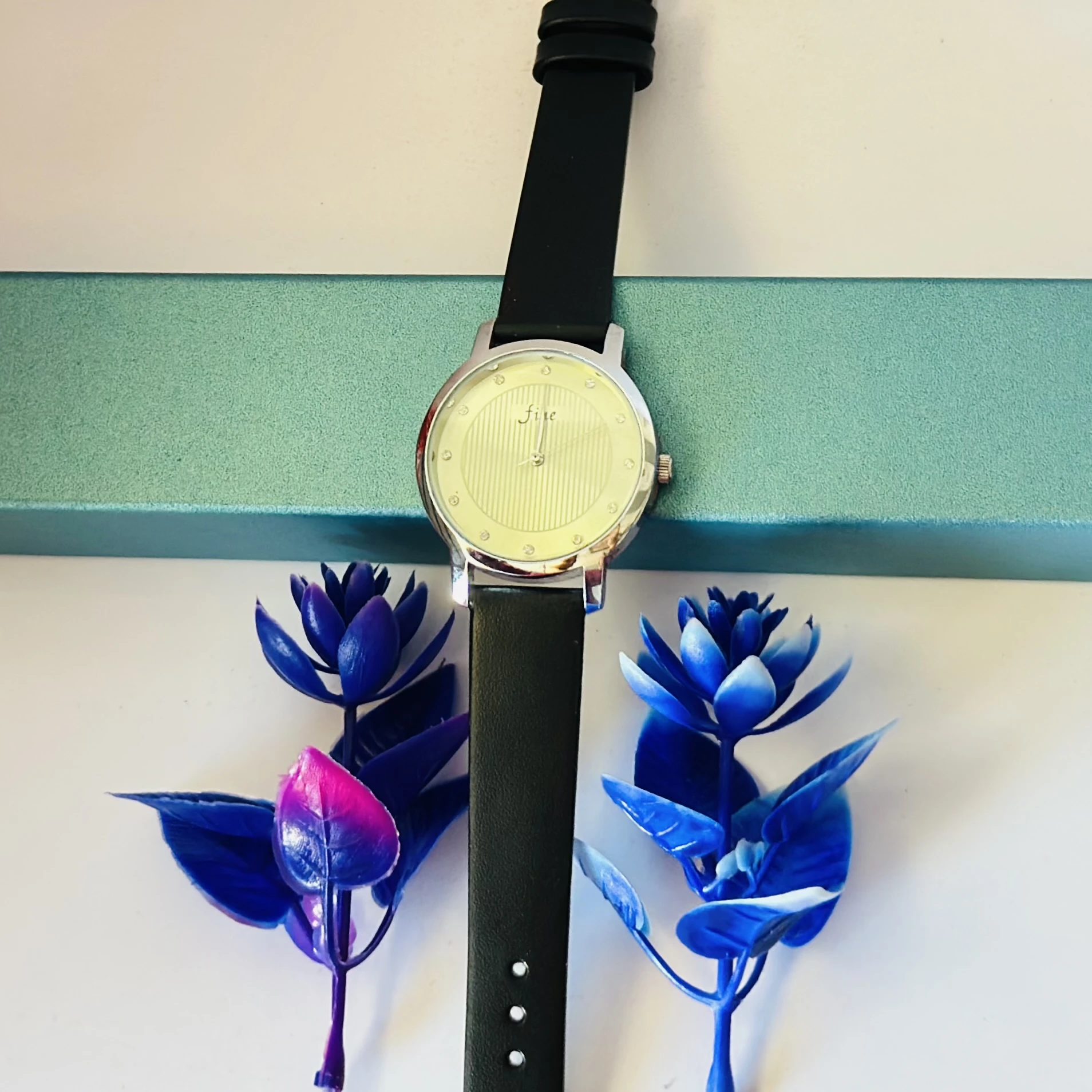 👉 Theme :- women's round leather watch in silver and black with a white dial