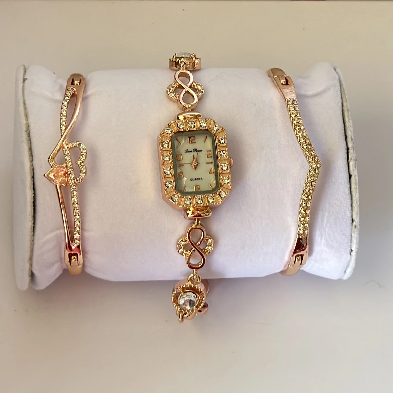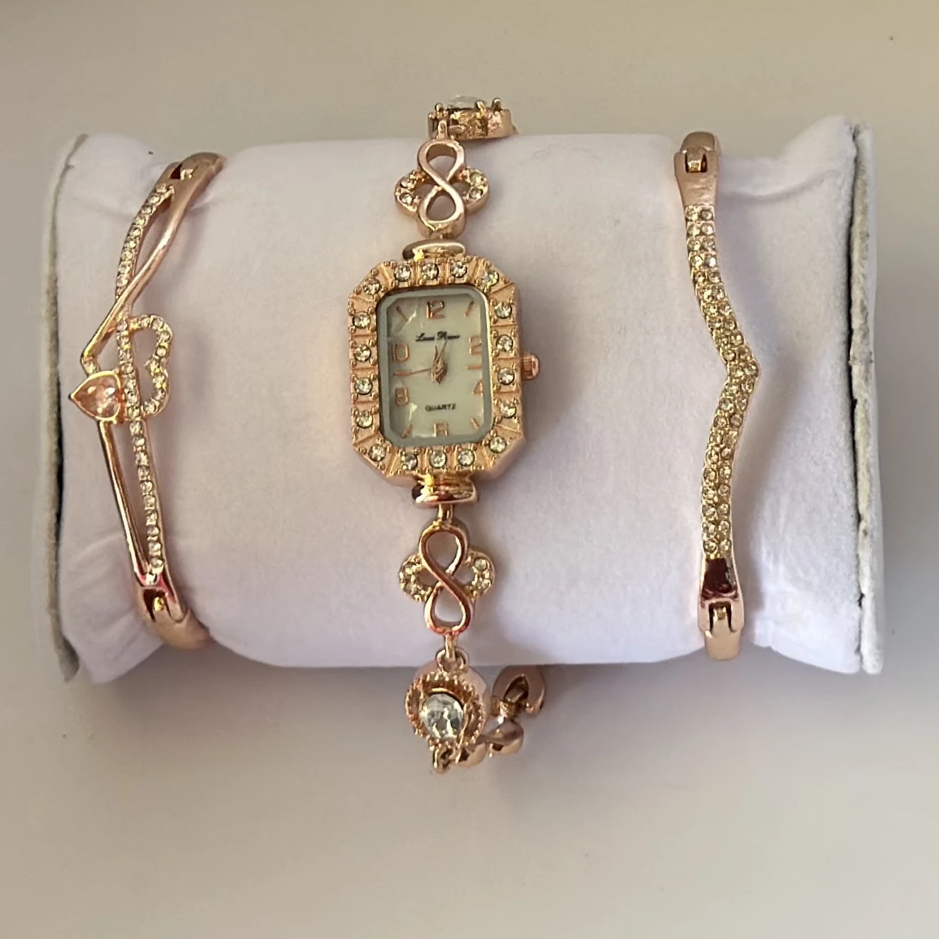 👉 Theme :- women's watch and bracelet set in rose gold color.