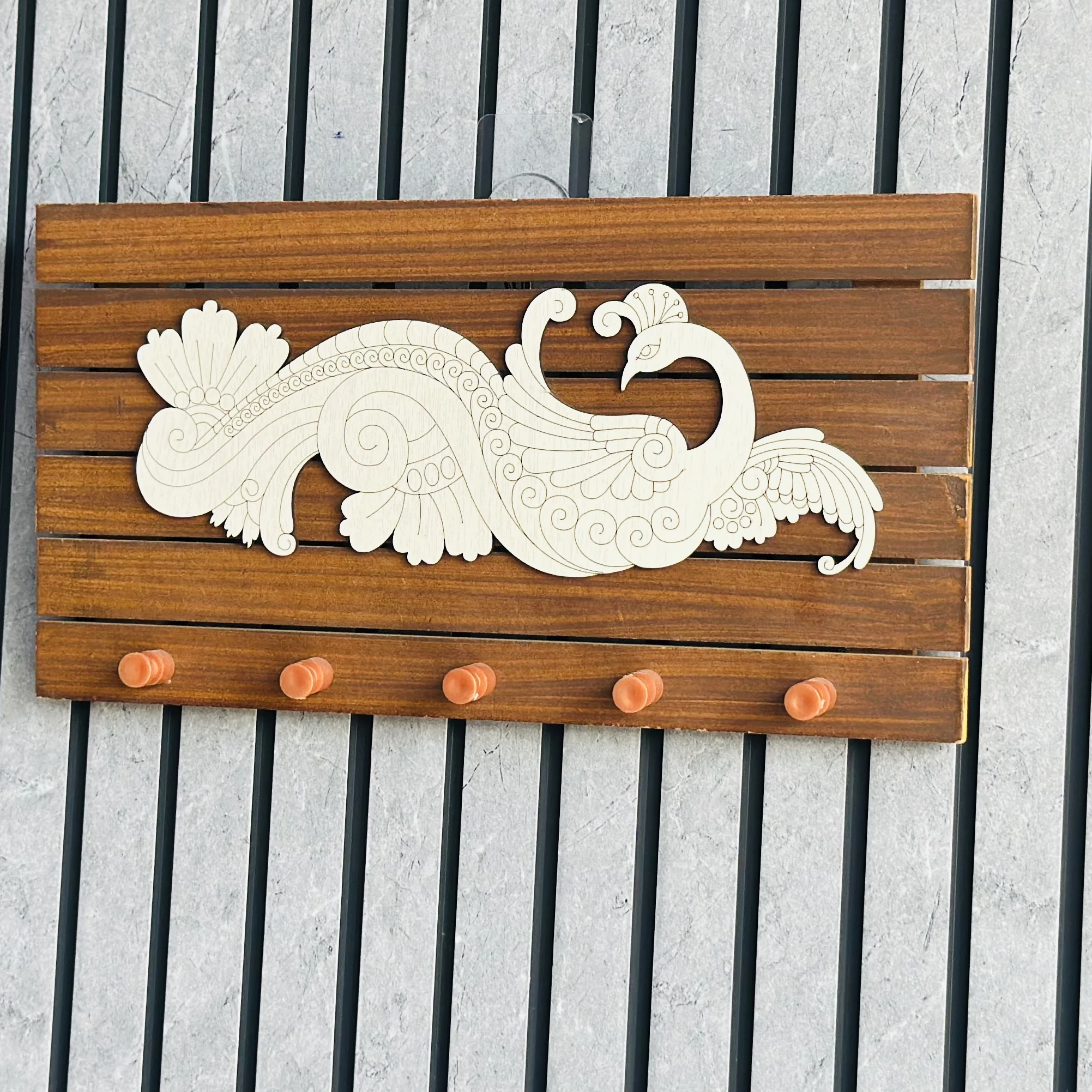 👉 Theme :- wooden key holder with a peacock design