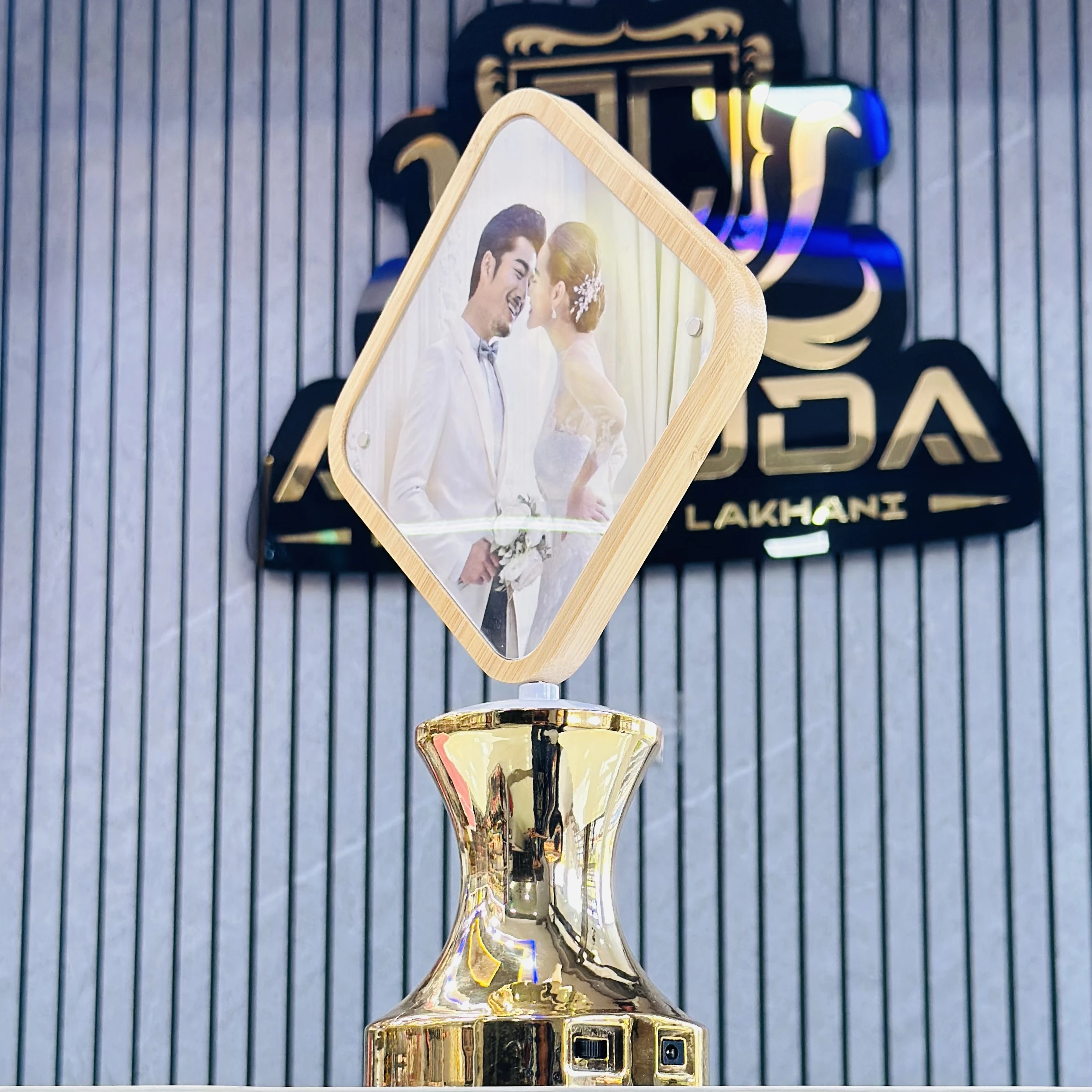 👉 Theme :- Wooden Rhombus Shape LED Rotating Lamp