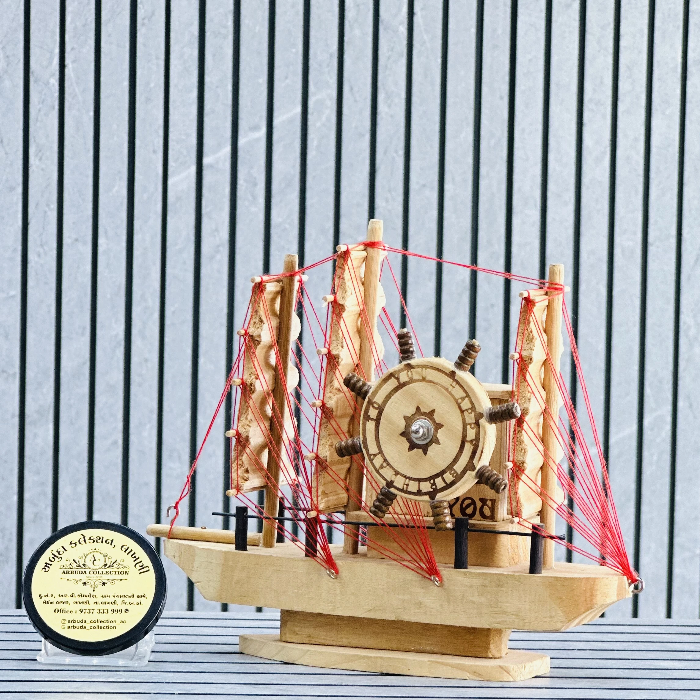 *✅ ARBUDA COLLECTION ✅* *✅9737333999✅* Theme :- Wooden Sailing Ship Model Brand :- arbuda collection lakhani Colour:- Brown Style:- Designer Fancy look Material:- It is crafted from wood giving it an antique and rustic aesthetic. Dimensions :- 9 hight, 10 width Uses :- used for home or office decoration, adding a nautical or cultural touch to the space. Cleaning:- wipe clean with a dry cloth Origin:- made in India by local artists Other words:- limited addition…
