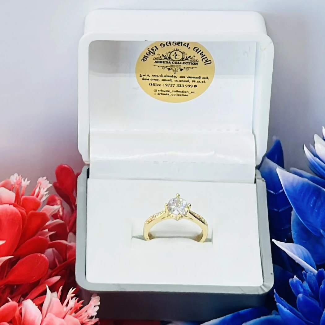 👉 Theme :- Yellow gold engagement ring with a central stone and side accents.